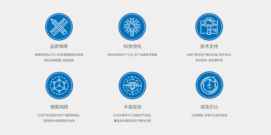 自公司誕生至今,西城偉業(yè)機(jī)械始終秉承“做百年企業(yè),立民族品牌”的公司宗旨,精準(zhǔn)把控市場需求的同時(shí),不斷完善升級核心產(chǎn)品,以自動化、數(shù)控化、智能化的中高端產(chǎn)品作為公司的全新戰(zhàn)略方向。經(jīng)過多年潛心發(fā)展,其產(chǎn)品品質(zhì)已具有國際水準(zhǔn),公司現(xiàn)已成為中國板式家具智造領(lǐng)域的創(chuàng)新領(lǐng)導(dǎo)品牌。
